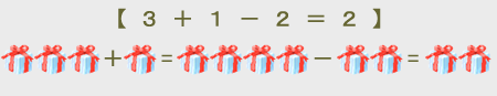 【 3 たす 1 で → 4 】 【 4 ひく 2 で → 2 】